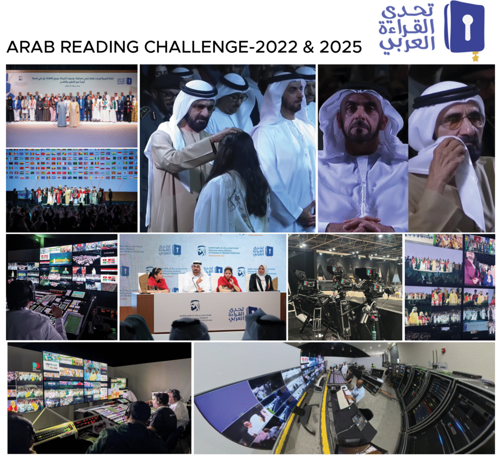 Arab Reading Challenge, We proudly delivered full Host Broadcast services, capturing one of the region’s most prestigious educational events with scale, precision, and creativity. The production featured an extensive 18 camera 4K setup, including a Track Camera for breathtaking aerial shots from the grandstand, a Jimmy Jib, and a PTZ camera mounted on the stage-top truss for stunning coverage of the Sheikhs’ walk-in and grand audience view. Every moment was orchestrated to reflect the grandeur and emotion of the event. Our team also provided SNG broadcast coverage for six Arab countries; Saudi Arabia, Iraq, Egypt, Tunisia, Lebanon, and Bahrain, connecting viewers across the region in real time. Alongside the live production, we handled Media Asset Management, ensuring all show footage was delivered on time for immediate video edits and post-event content. With a dedicated on-ground team of five videographers and four photographers, every highlight, reaction, and milestone was beautifully documented. The Arab Reading Challenge broadcast stood as a landmark achievement for Ever Broadcast, a showcase of technical mastery and heartfelt storytelling that celebrated knowledge, culture, and the shared passion.